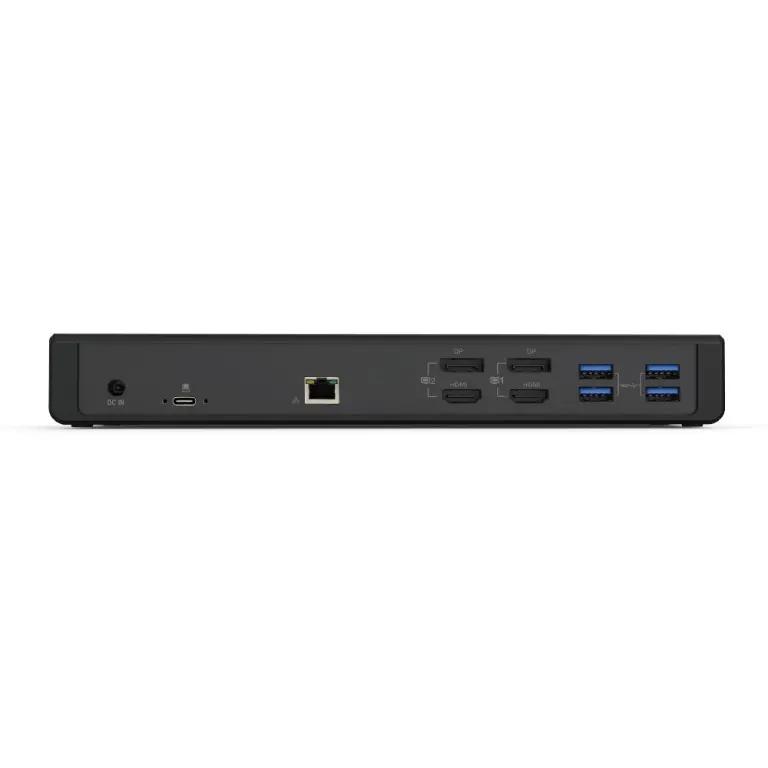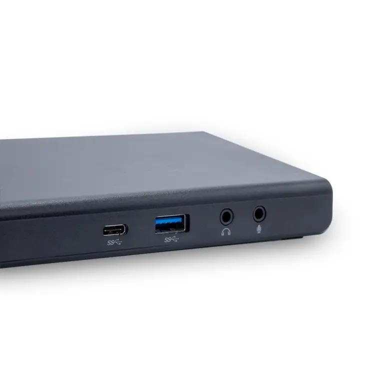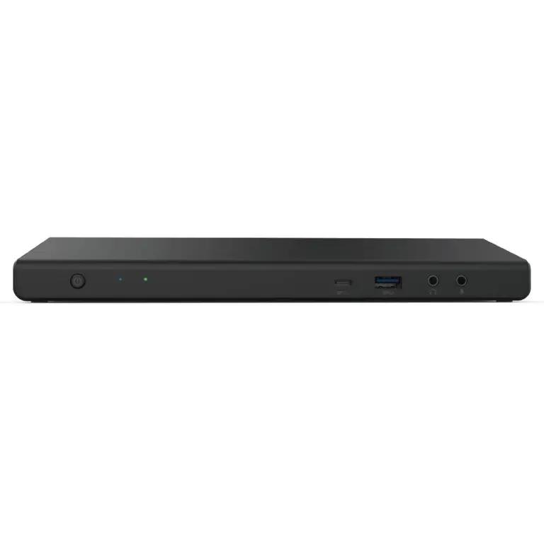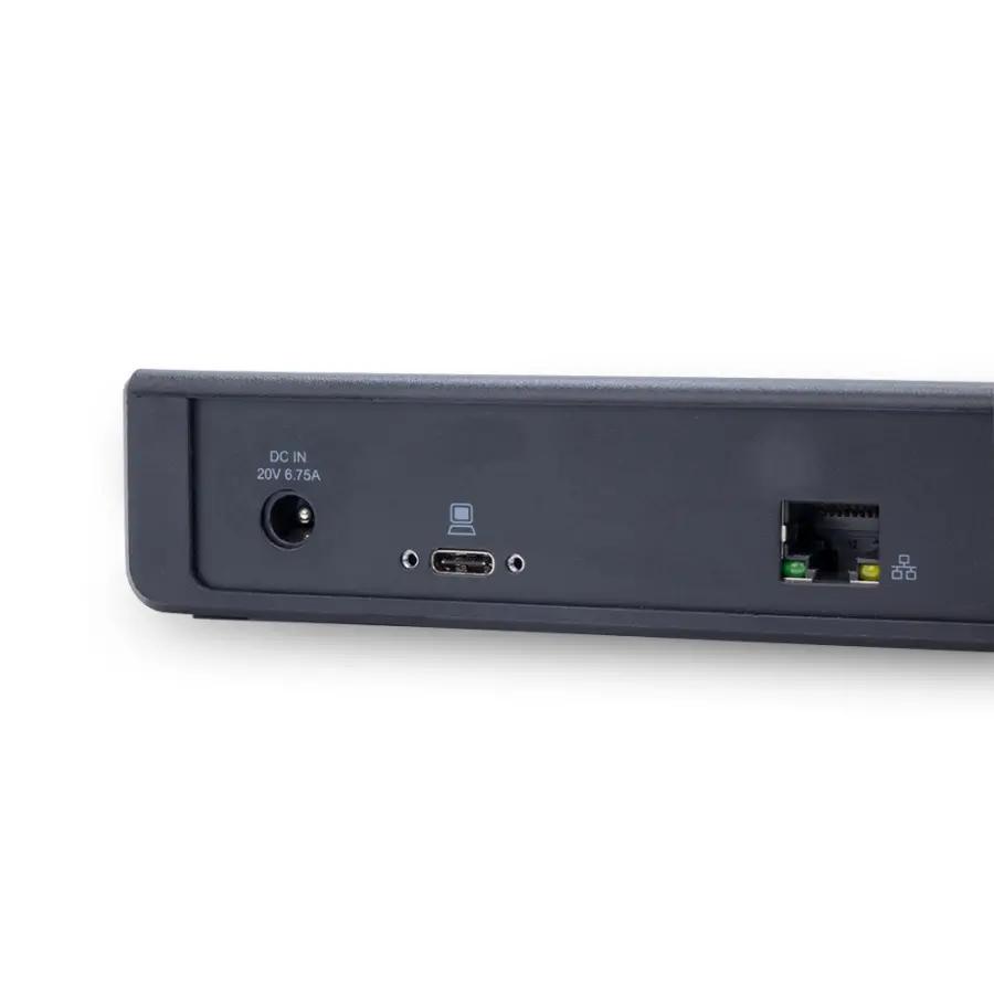 Het dockingstation beschikt naast video- en netwerkpoorten ook over een lijningang en lijnuitgang. Dit maakt het eenvoudig om externe audioapparatuur aan te sluiten, zoals speakers of een headset, waardoor je geluidservaring naar een hoger niveau wordt getild.