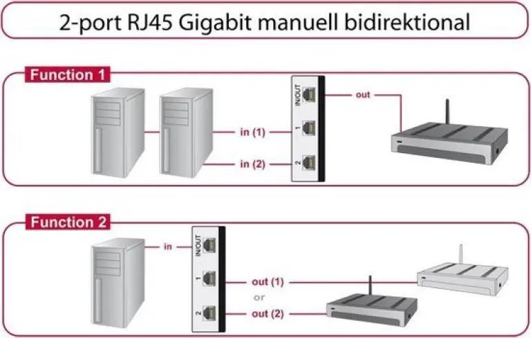Door de manuele schakelaar voorkom je conflicten die kunnen ontstaan als meerdere apparaten tegelijk verbonden zijn met hetzelfde netwerk. Je schakelt handmatig tussen de verbindingen, zodat je altijd controle hebt over welke verbinding actief is. Dit is ideaal voor situaties waarin je bijvoorbeeld twee netwerken hebt en slechts één apparaat dat je wilt gebruiken zonder onderbrekingen.