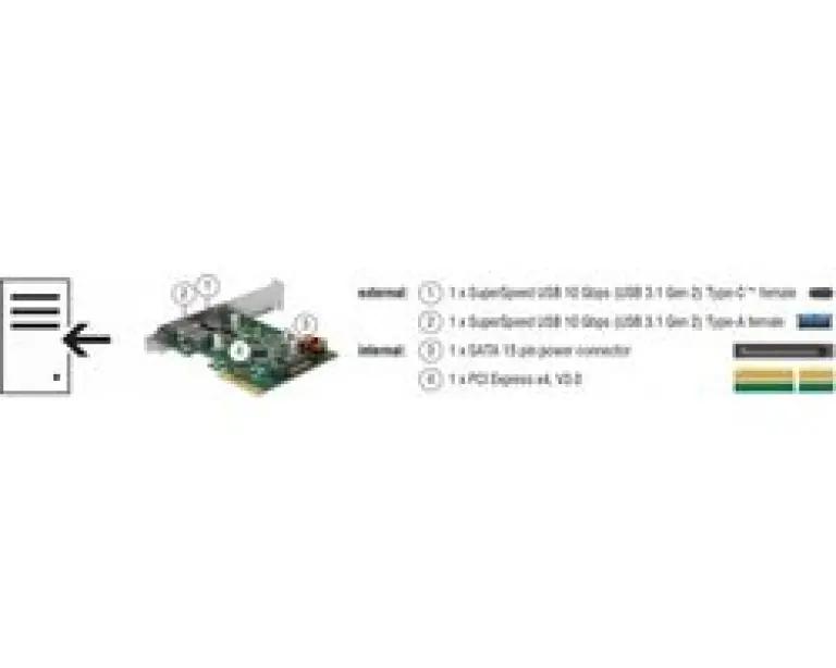 DeLock 90299 - PCIe USB 3.2 Gen 1 interfacekaart - 10 Gbit/s dataoverdracht - Asmedia chipset