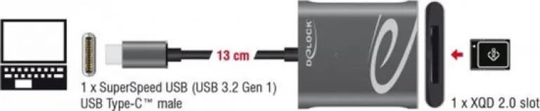 De Delock 91741 geheugenkaartlezer is speciaal ontworpen voor het lezen en schrijven van XQD-geheugenkaarten. Dankzij de Superspeed USB 3.2 Gen 1 (ook bekend als USB 3.1 Gen 1) interface met USB Type-C™ aansluiting, sluit je deze kaartlezer gemakkelijk aan op je pc of laptop. Zo geniet je van een snelle en stabiele data-overdracht tot wel 5 Gbps.