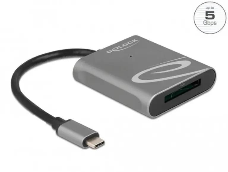 Delock 91741 - Geheugenkaartlezer - USB 3.2 Gen 1 - Type-C - Zwart, Grijs