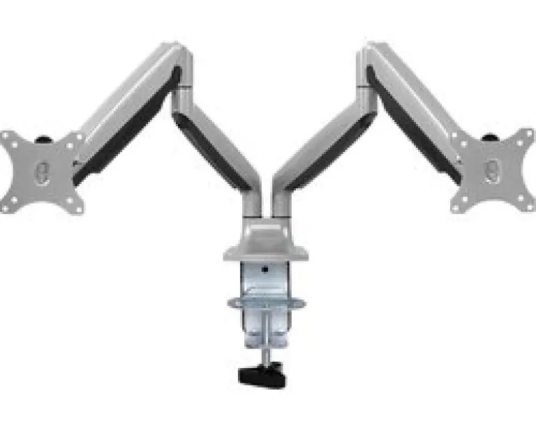 Deze beugel ondersteunt maximaal twee schermen met een schermgrootte van 13 inch (33 cm) tot 32 inch (81,3 cm). Zo kun je efficiënt multitasken en geniet je van een overzichtelijke werkruimte zonder rommel.