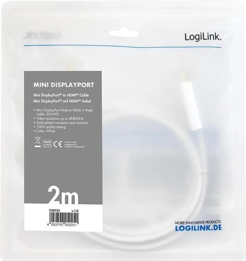 De LogiLink CV0123 is een hoogwaardige adapterkabel die jouw Mini DisplayPort apparaat eenvoudig verbindt met een HDMI-scherm. Met een lengte van 2 meter heb je genoeg ruimte om je apparaten flexibel te plaatsen zonder gedoe met te korte kabels.