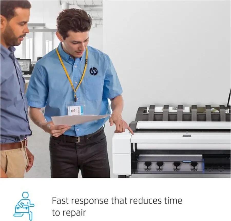 Met de HP 3 jaar onsite hardwaresupport voor de DesignJet T1XX-24 zorg je dat jouw printerbedrijf altijd soepel blijft draaien. Deze service biedt je de zekerheid dat je binnen één werkdag hulp krijgt bij hardwareproblemen. Geen lange wachttijden meer en direct een expert aan het werk bij jou op locatie.