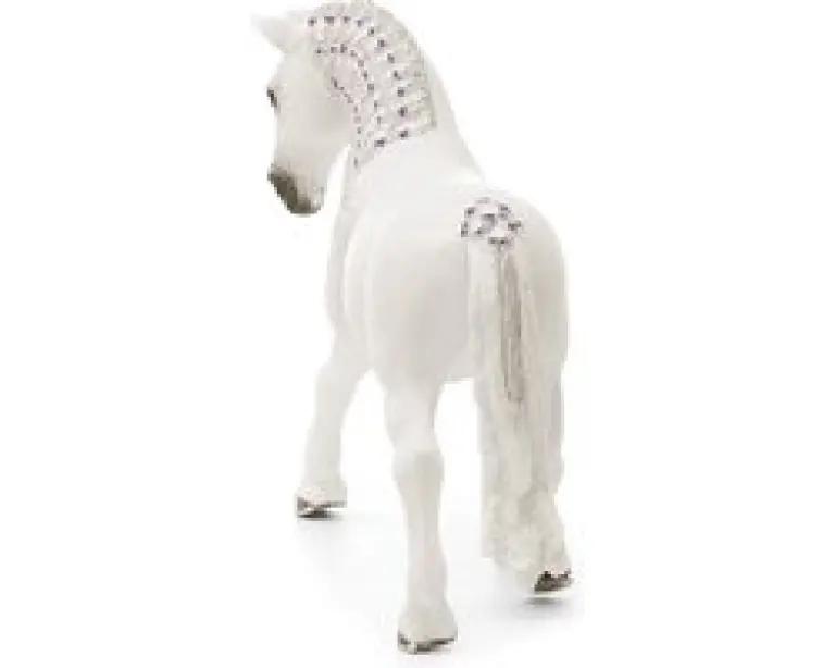 De Schleich 13819 Lipizzaner merrie is een prachtige speelfiguur die het beroemde ras tot leven brengt. Lipizzaners staan bekend om hun indrukwekkende dressuurkunsten, vooral de beroemde Capriole sprong waarbij het paard met kracht zijn achterpoten naar achteren slaat terwijl het in de lucht is. Met deze speelfiguur haal je een stukje van die elegantie en kracht in huis.