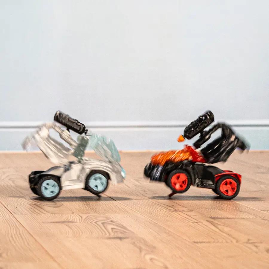 Deze crashmobiel is niet zomaar een voertuig. Het vuurwapen is draaibaar en zorgt ervoor dat je Mini Creature in elke situatie kan richten en schieten. Of het nu gaat om een achtervolging of een onverwachte vijand, jij bent altijd gewapend en klaar voor actie. Dankzij de terugtrekmotor schiet de wagen pijlsnel vooruit, waardoor je de overhand krijgt in elk spel.