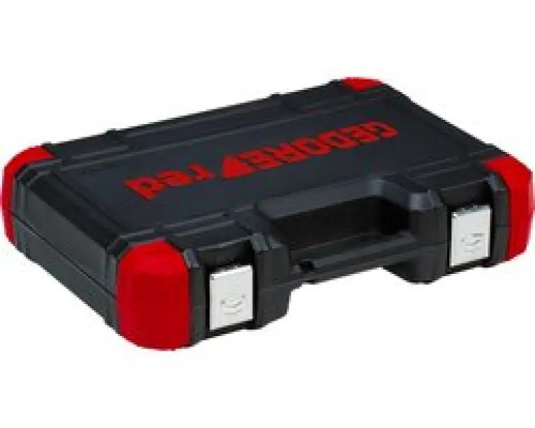 Al het gereedschap wordt geleverd in een stevige kunststof koffer in het kenmerkende GEDORE rood-design, met metalen scharnieren en sluiting voor veilig transport en opslag. De gereedschappen zijn vastgeklemde geplaatst, zodat alles netjes op zijn plek blijft tijdens vervoer. De set is gemaakt van chroom-vanadiumstaal met een mat gesatineerde verchroomde afwerking, wat zorgt voor een lange levensduur en bestand is tegen intensief gebruik.
