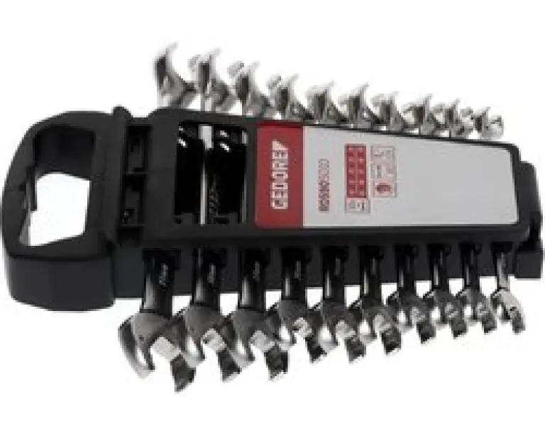 Elke sleutel in deze set is uitgerust met een ratelfunctie aan de bekkant, waardoor je snel en efficiënt kunt werken zonder de sleutel telkens te hoeven verwijderen. Zowel de bek als de ringkant zijn in een hoek van 15° geplaatst, wat het gebruiksgemak verhoogt en het werken in krappe ruimtes vergemakkelijkt. De combinatie van deze functies maakt deze set ideaal voor zowel professionele monteurs als doe-het-zelvers.
