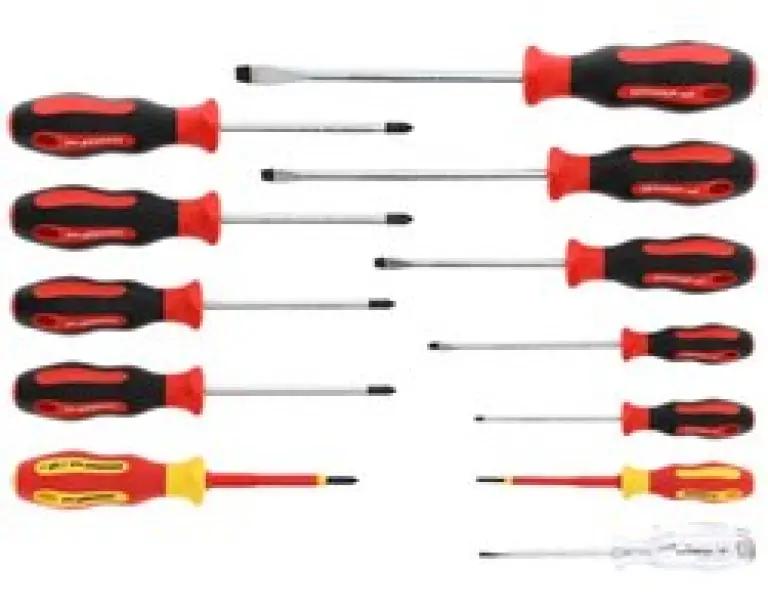 De 2-componenten handgrepen zijn speciaal ontworpen om de kracht efficiënt over te brengen en tegelijkertijd je handen te sparen. Dankzij de gespoten grepen vormen ze een stevige eenheid met de klingen, wat zorgt voor optimale controle tijdens het klussen. Bovendien voorkomen de vijfkante greepkoppen dat de schroevendraaiers wegrollen op je werkplek, zodat je altijd veilig en georganiseerd werkt.