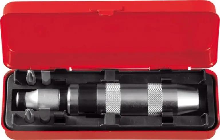 De Gedore RED 3301399 slagschroevendraaierset is jouw ideale partner voor het losmaken van vastzittende schroeven. Dankzij de hamerbediening kun je met gerichte klappen kracht zetten, waardoor zelfs de meest hardnekkige schroeven moeiteloos loskomen. De draairichting is eenvoudig rechts- of linksom te schakelen, wat flexibiliteit geeft tijdens het werken.