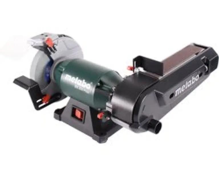 | Verpakkingsinhoud | - 1x Metabo BS 200 Plus combi bandslijpmachine - 1x korund standaard slijpschijf 60 N - 1x slijpband K 60 - 1x vonkbeschermende bril - 1x werkstuksteun - 1x zeskantsleutel |