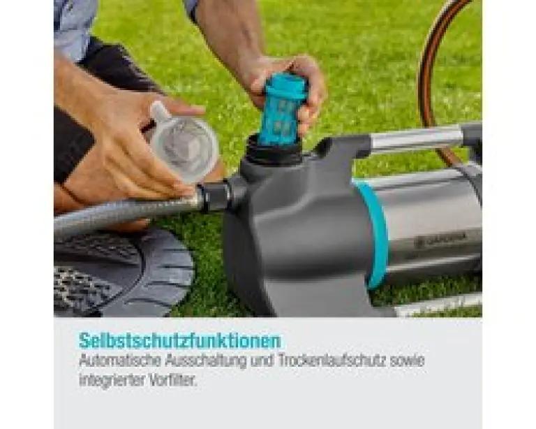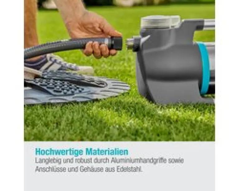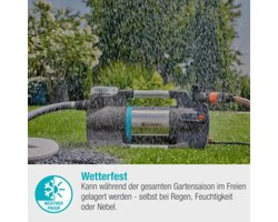 Deze pomp is gemaakt van hoogwaardige materialen, zoals roestvrij staal en aluminium, en is bestand tegen alle weersomstandigheden. Je kunt de pomp het hele tuinseizoen buiten laten staan, zelfs bij regen en mist. De rubberen voetjes zorgen voor een stabiele en veilige stand, terwijl het geïntegreerde voorfilter voorkomt dat vuildeeltjes in de pomp komen. Dankzij droogloopbeveiliging schakelt de pomp automatisch uit bij gebrek aan water, wat de levensduur verlengt.
