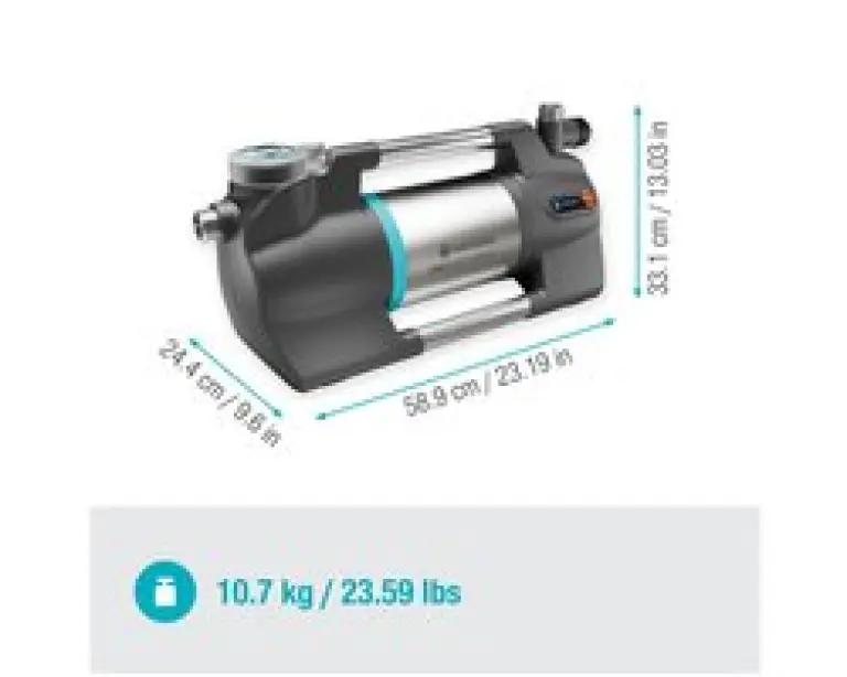De Gardena 09058-61 SilentComfort is de krachtigste tuinpomp van Gardena, ontworpen om water of regenwater efficiënt te gebruiken voor het besproeien van je tuin. Met een stroomverbruik van slechts 1050 watt levert deze pomp een indrukwekkend debiet van 6300 liter per uur en kan het water tot een hoogte van 49 meter pompen, wat overeenkomt met een druk van 4,9 bar. Dit maakt hem ideaal voor grote tuinen en intensief gebruik.