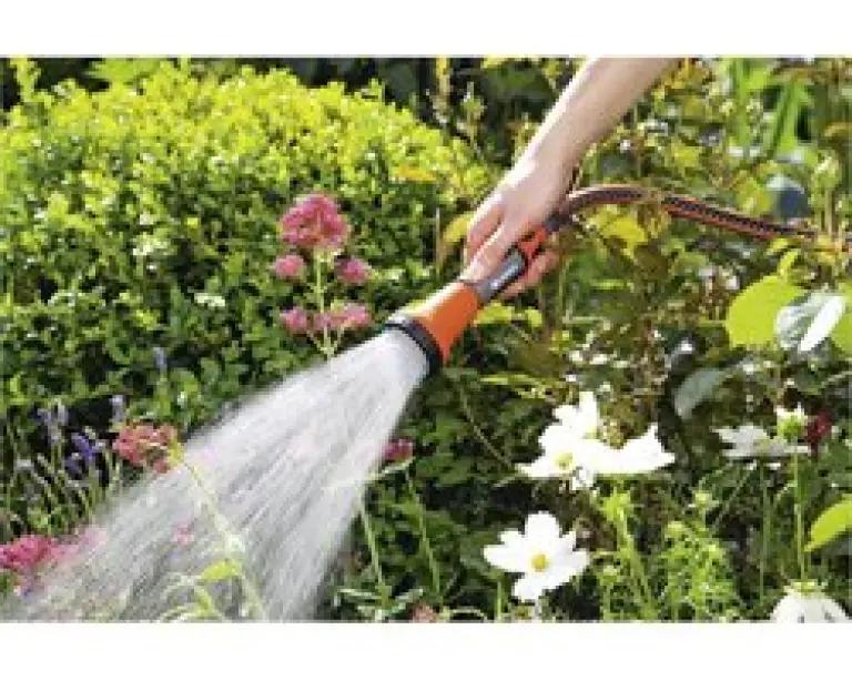 De waterstraal van de Gardena Bewateringsbrause is traploos regel- en afsluitbaar. Dit betekent dat je zelf de intensiteit van de waterstraal kunt bepalen, van een zachte nevel tot een krachtige straal, helemaal naar jouw wens.