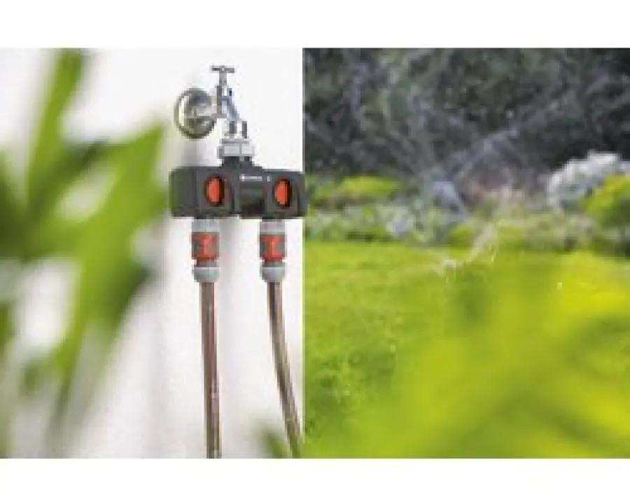 Met de Gardena 2-weg-waterverdeler kun je twee accessoires tegelijk aansluiten op ÊÊn kraan. Dit maakt het gemakkelijk om bijvoorbeeld twee besproeiingscomputers of watertimers gelijktijdig te gebruiken zonder steeds te moeten wisselen. De uitgangen zijn traploos regelbaar, zodat je precies de juiste waterdoorvoer kunt instellen voor elk aangesloten apparaat.