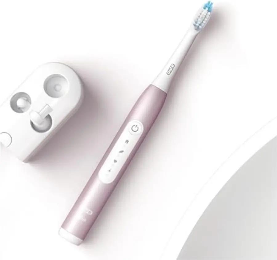 De Braun Oral-B Pulsonic Slim Luxe 4900 is jouw nieuwe beste vriend voor een frisse en grondige mondhygiëne. Deze elektrische tandenborstel combineert een strak design met krachtige reinigingstechnologie, waardoor je tanden schoner aanvoelen en je glimlach stralender wordt. Het slanke en lichte ontwerp in zwart met roségouden accenten maakt het een stijlvolle accessoire in je badkamer.