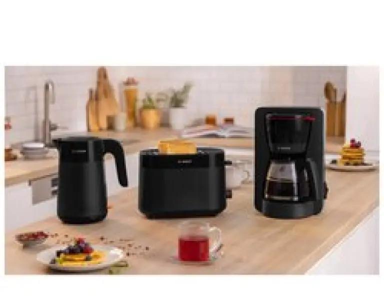 Het Bosch TKA2M113 MyMoment koffiezetapparaat valt direct op door zijn spannend oppervlaktedesign met mat-glanzende highlights. Dit geeft jouw keuken een frisse en levendige uitstraling. De koffiekan is uitgerust met een grote opening, waardoor je deze eenvoudig en snel schoonmaakt. Zo geniet je altijd van een heerlijke kop koffie zonder gedoe.