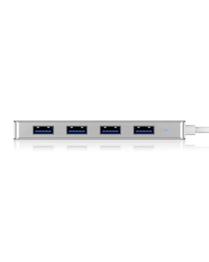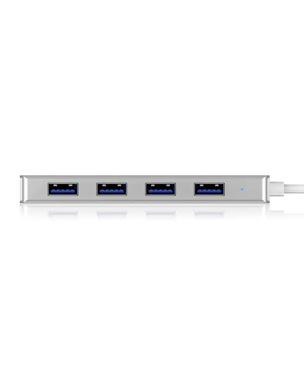 De behuizing van de IB-HUB1425-C3 is gemaakt van een combinatie van aluminium en kunststof. Dit maakt het apparaat niet alleen stevig en duurzaam, maar geeft het ook een moderne en stijlvolle uitstraling in het zilver. Dankzij het compacte formaat (30 mm breed, 100 mm diep en 10 mm hoog) neem je de hub gemakkelijk mee of plaats je hem op je bureau zonder veel ruimte in te nemen.