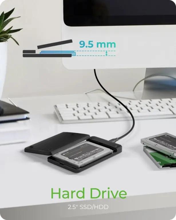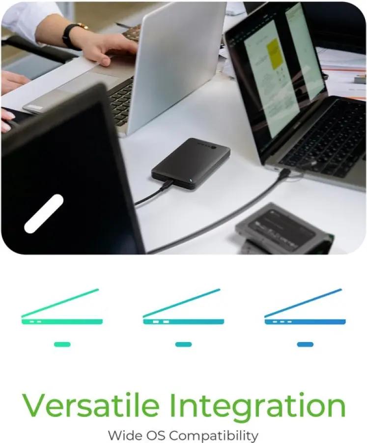 Met de USB Type-C aansluiting sluit je de behuizing eenvoudig aan op moderne apparaten. Dit zorgt voor een snelle en stabiele verbinding, ideaal voor het overzetten van grote bestanden. Plug and play betekent dat je zonder installatie direct aan de slag kunt, wat het gebruik heel gemakkelijk maakt.