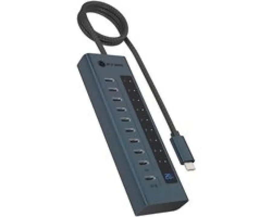 Met de Icy Box IB-HUB1450-C31 breid je eenvoudig het aantal beschikbare USB-poorten van je computer uit. Deze hub is uitgerust met 10 poorten en ondersteunt de snelle USB 3.2 Gen 2 (ook bekend als 3.1 Gen 2) Type-C interface. Zo sluit je moeiteloos al je apparaten aan, van externe harde schijven tot toetsenborden en opladers, zonder snelheid in te leveren.