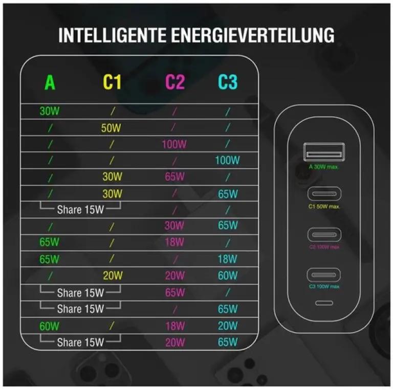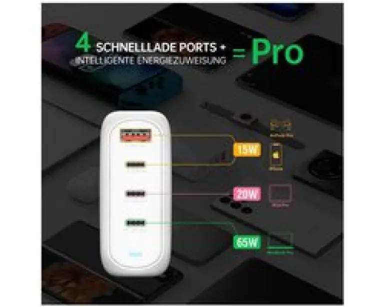 De 4smarts Ladegert GaN Flex Pro 100W is een veelzijdige oplader die tot vier apparaten tegelijk van stroom voorziet met een indrukwekkend totaalvermogen van 100W. Dit maakt hem perfect voor het opladen van je smartphone, tablet, laptop en zelfs draadloze oortjes. Dankzij de krachtige output hoef je nooit te wachten tot je apparaten volledig zijn opgeladen.