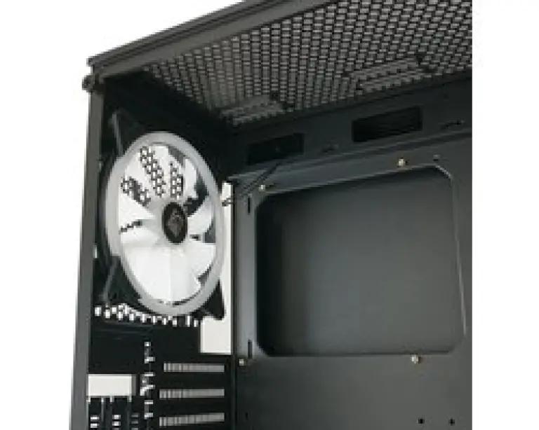 De behuizing wordt geleverd met vier 140 mm ARGB ventilatoren die zorgen voor een optimale luchtstroom om je systeem koel te houden, zelfs tijdens intensief gamen. Je kunt de kleur van de ventilatoren aanpassen via de meegeleverde afstandsbediening, de RGB-knop op het I/O-paneel of via de RGB-software van je moederbord. Bovendien kun je tot acht ventilatoren monteren, zodat je de koeling helemaal kunt afstemmen op jouw wensen.