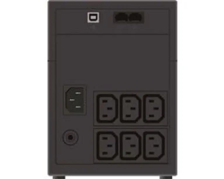 Deze UPS beschikt over maar liefst 6 AC-uitgangen (IEC C13), zodat je meerdere apparaten tegelijk kunt aansluiten. De ingebouwde RJ-11/RJ45-overspanningsbeveiliging beschermt je telefoonaansluitingen tegen schadelijke pieken. Bovendien zorgt de automatische herstartfunctie ervoor dat de UPS weer opstart zodra de netspanning terugkeert.