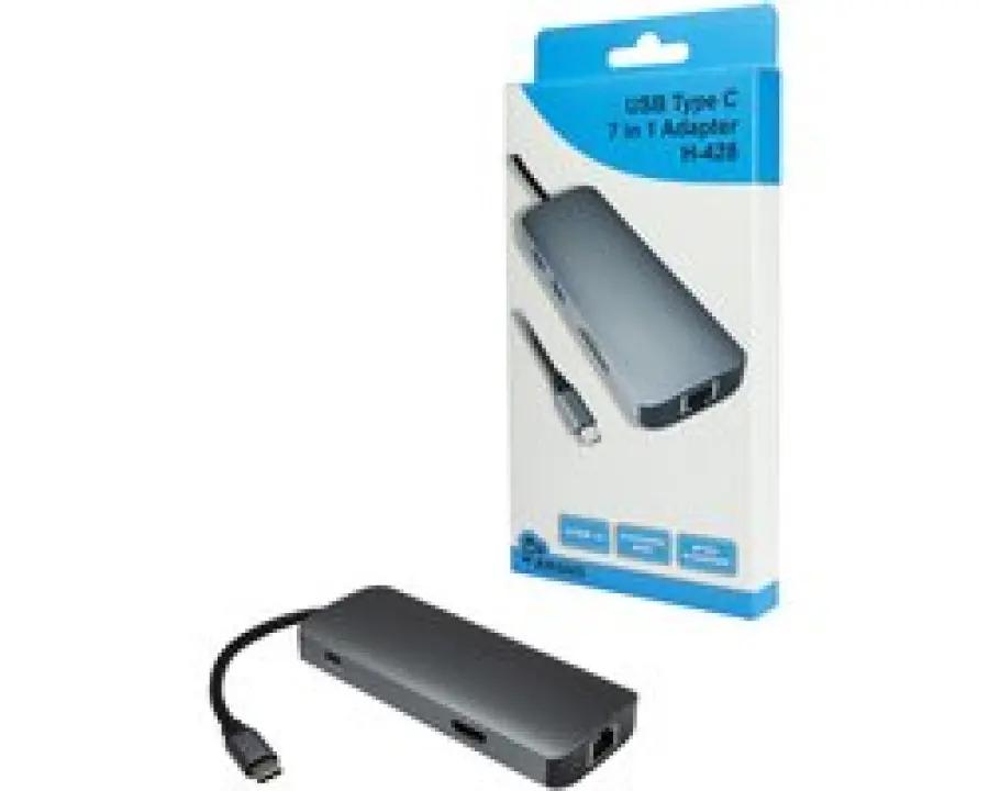 De Inter Tech H-428 is een veelzijdige adapter die jouw USB-C poort omtovert tot een complete hub. Met deze 7-in-1 adapter heb je toegang tot verschillende aansluitingen, waaronder HDMI, USB Type-A, USB Type-C en een geïntegreerde geheugenkaartlezer. Zo kun je eenvoudig meerdere apparaten tegelijk aansluiten en gebruiken, ideaal voor werk of entertainment.