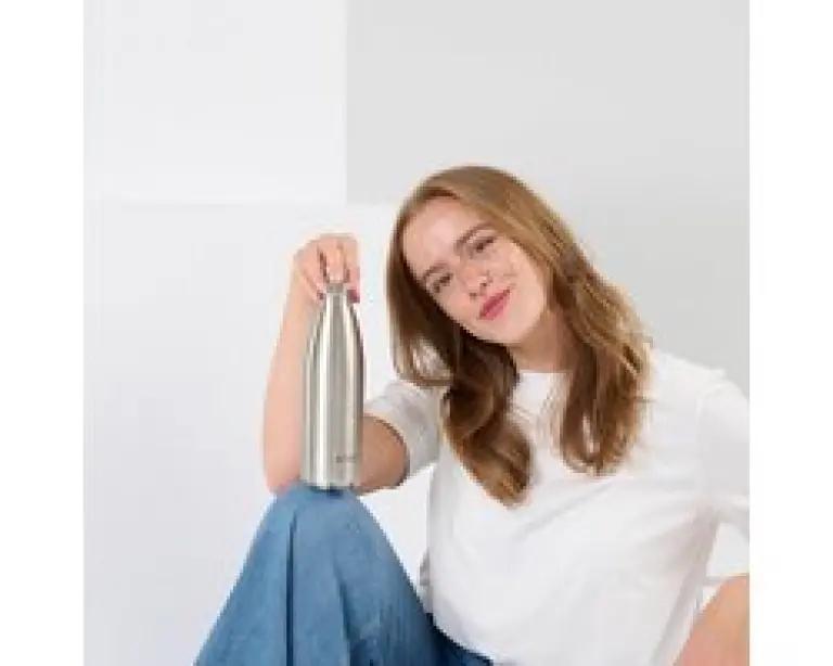 De fles heeft een inhoud van 500 ml, wat perfect is voor warme dranken zoals thee in de winter of een verfrissend koud drankje in de zomer. Dit formaat is ook handig voor een tussendoortje van water tijdens een wandeling bij zonsondergang. Dankzij het pure roestvrijstalen ontwerp is de fles niet alleen robuust, maar blijft hij er ook na jaren gebruik stijlvol uitzien.