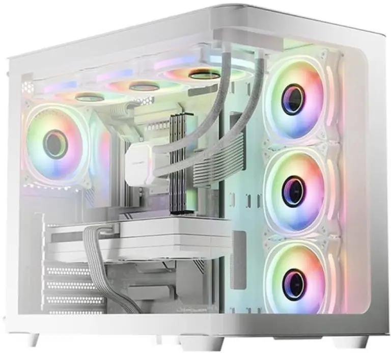 De LC-Power LC-8001W-ON is een midi tower computerbehuizing in een frisse witte kleur. Deze behuizing is speciaal ontworpen voor gamers en pc-bouwers die op zoek zijn naar een combinatie van stijl en functionaliteit. Met een modern zijraam en gehard glas laat je jouw interne hardware mooi zien, terwijl de behuizing toch stevig en betrouwbaar is dankzij het gebruik van metaal en kunststof.