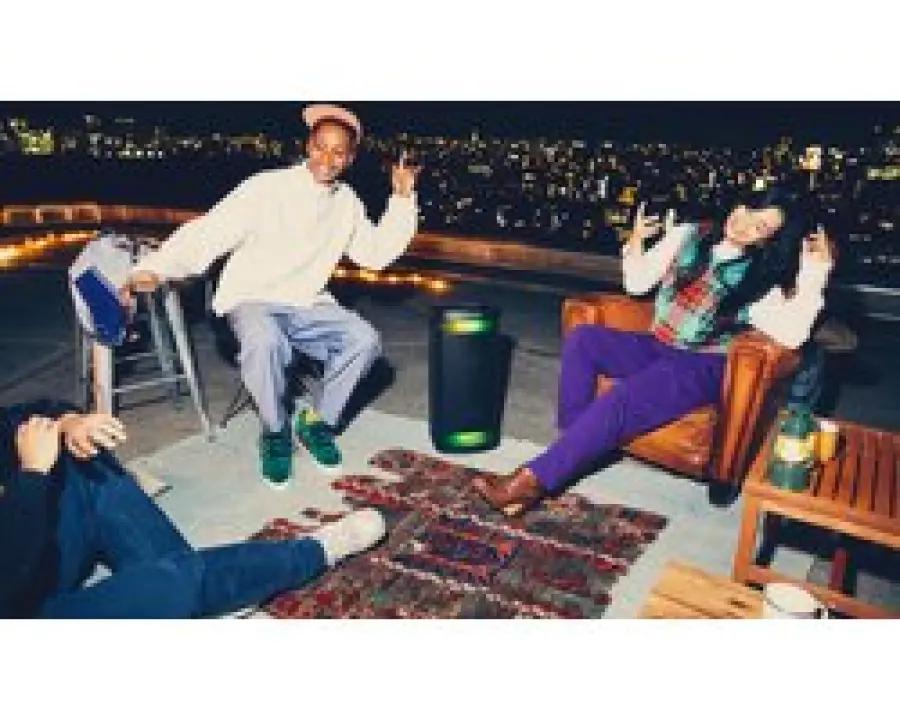Dankzij de nieuwe sfeerverlichting kan je uit verschillende verlichtingspatronen kiezen, bijvoorbeeld een knipperend effect dat feestjes een extra impuls geeft of rustgevende kleuren voor een ontspannen avondje thuis. Optimaliseer geluidsinstellingen, bedien je muziek, kies verlichtingspatronen en beheer je apparaten direct op je telefoon met behulp van de Sony | Music Center-app.