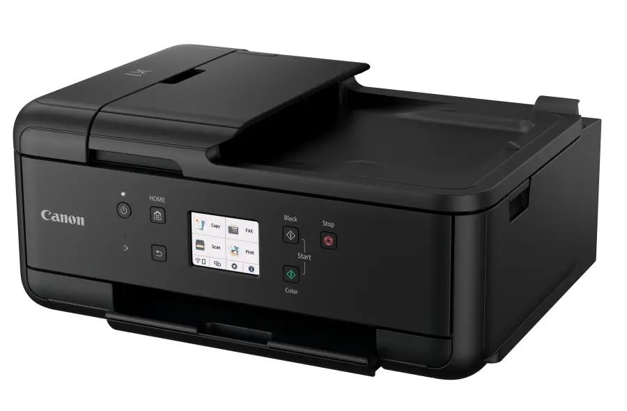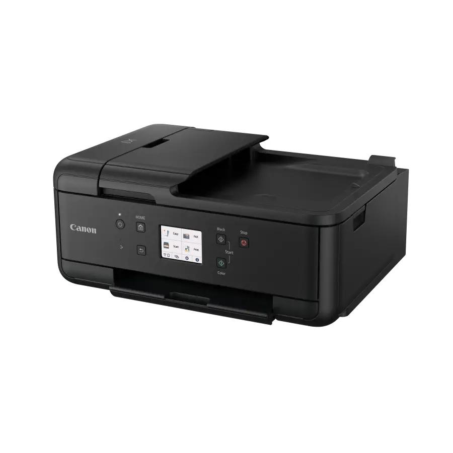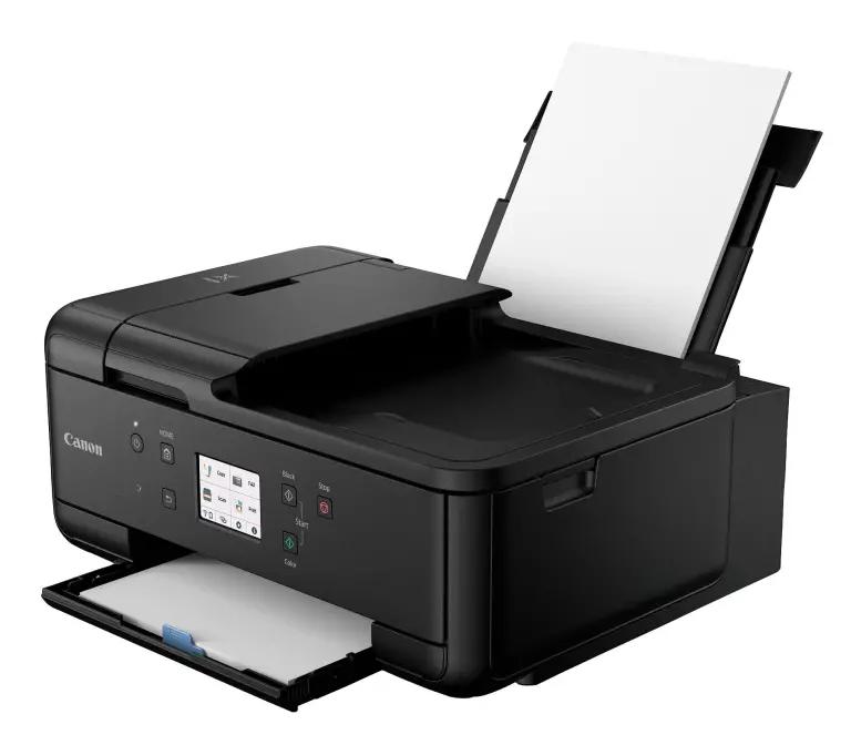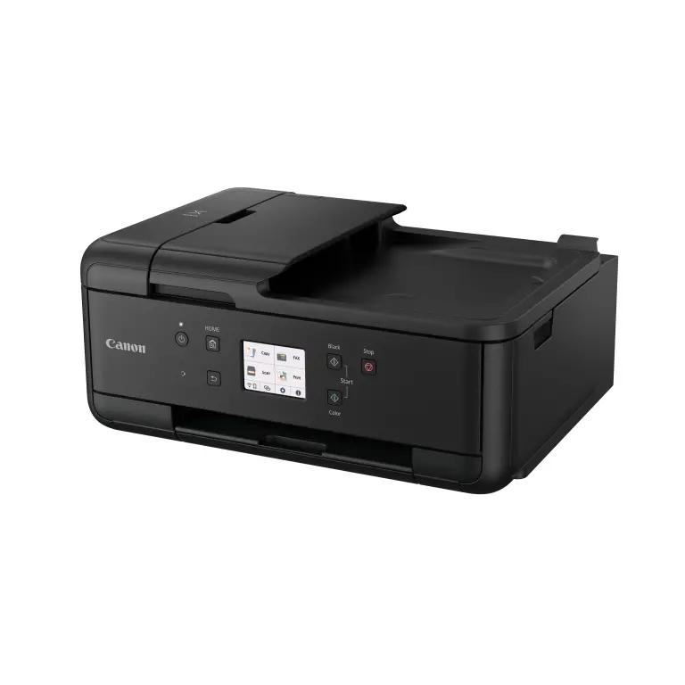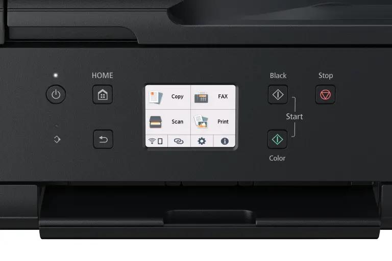 De Canon PIXMA TR7650 is een veelzijdig 4-in-1 apparaat waarmee je kunt printen, kopiëren, scannen en faxen. Dankzij het heldere 2,95" touchscreen bedien je alle functies eenvoudig en snel. Met een compact formaat van 438 x 190 x 350 mm en een gewicht van 7,9 kg past deze printer perfect in elke thuis- of kantooromgeving.
