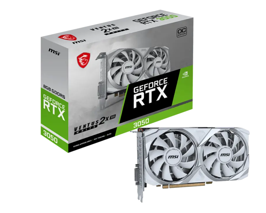 De MSI VENTUS RTX 3050 2X XS WHITE 8G OC is een krachtige grafische kaart die is ontworpen voor gamers en creatieve gebruikers die op zoek zijn naar uitstekende prestaties. Met een grafische processor van de NVIDIA GeForce RTX 3050 familie en een kloksnelheid van 1807 MHz levert deze kaart indrukwekkende snelheid en soepelheid in moderne games en grafische toepassingen.