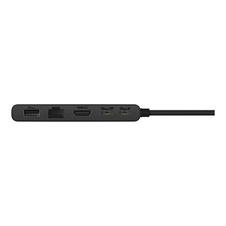 De behuizing van deze dock is gemaakt van een combinatie van metaal en kunststof, wat zorgt voor een stevige en duurzame constructie. Met een gewicht van slechts 98 gram en compacte afmetingen past hij gemakkelijk op je bureau of in je tas. De zwarte kleur geeft het apparaat een strakke, professionele uitstraling.