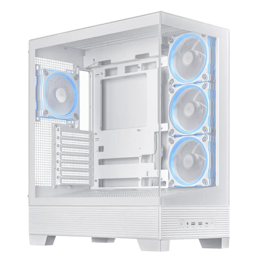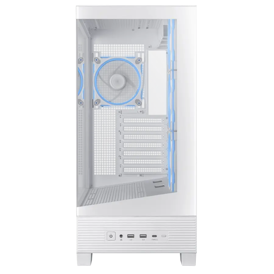 De ASUS A31 Plus TG ARGB White is een stijlvolle midi tower in wit met kleurrijke ARGB-verlichting. Dit maakt je setup niet alleen cooler om te zien, maar geeft je ook de vrijheid om je pc helemaal naar jouw smaak aan te passen. De verlichting zorgt voor een levendige en persoonlijke touch, waardoor jouw gamingplek of werkstation net dat beetje extra krijgt.