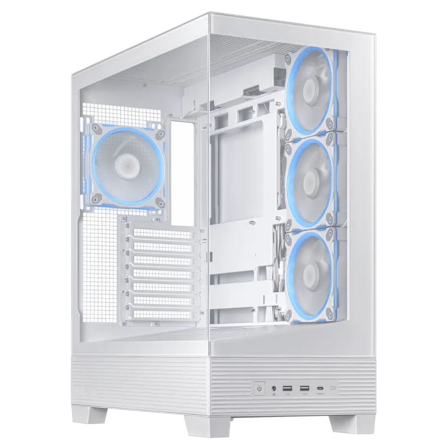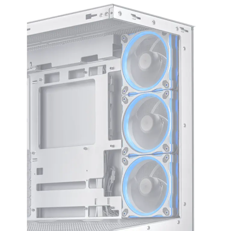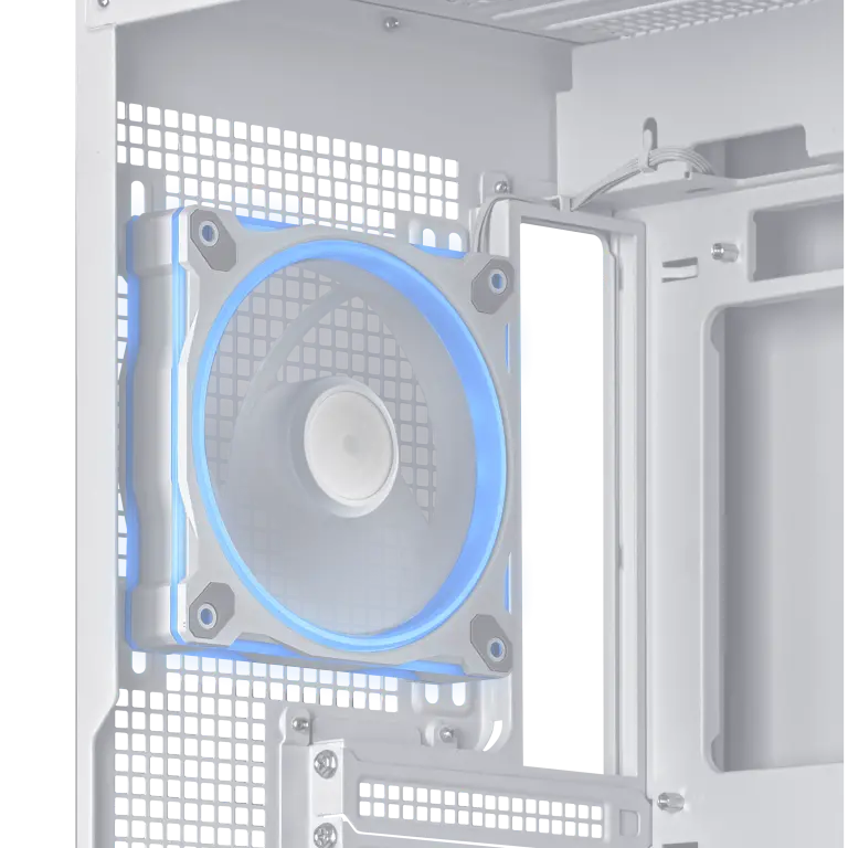 Het geharde glas aan de zijkant geeft een mooi zicht op je hardware en verlichting, terwijl het stevige, witte frame zorgt voor een strakke en moderne look. Met verbeterd kabelbeheer houd je je binnenkant netjes en overzichtelijk, wat niet alleen het uiterlijk ten goede komt maar ook de luchtstroom optimaliseert. Daarnaast biedt de behuizing genoeg ruimte voor lange grafische kaarten tot 38 cm en koeling met een hoogte tot 16,5 cm.
