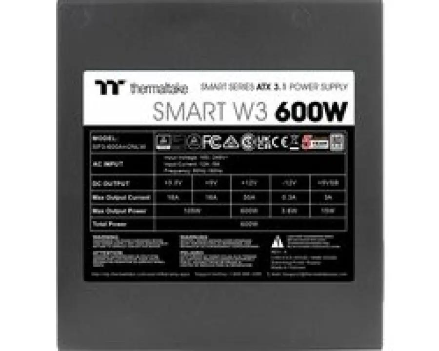 De Thermaltake Smart W3 voeding levert een totaal vermogen van 600 W. Dit maakt hem geschikt voor de meeste standaard desktop-pc's die een betrouwbare stroomvoorziening nodig hebben. Dankzij de 24-pin ATX aansluiting is hij eenvoudig te installeren in de meeste pc-behuizingen met ATX-standaard.