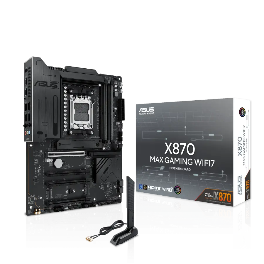 Wil jij je game-setup een flinke boost geven? Met het ASUS X870 MAX GAMING WIFI7 moederbord haal je een krachtpatser in huis die speciaal ontworpen is voor de nieuwste AMD-processors. Dit moederbord ondersteunt AMD Ryzen 7000, 8000 en 9000 series processors dankzij de moderne Socket AM5. Zo ben jij verzekerd van topkwaliteit en toekomstbestendigheid in één pakket.