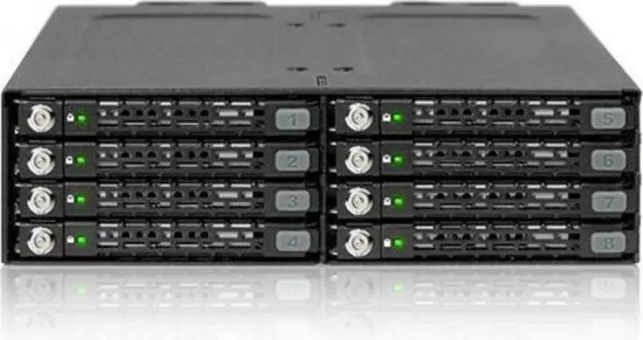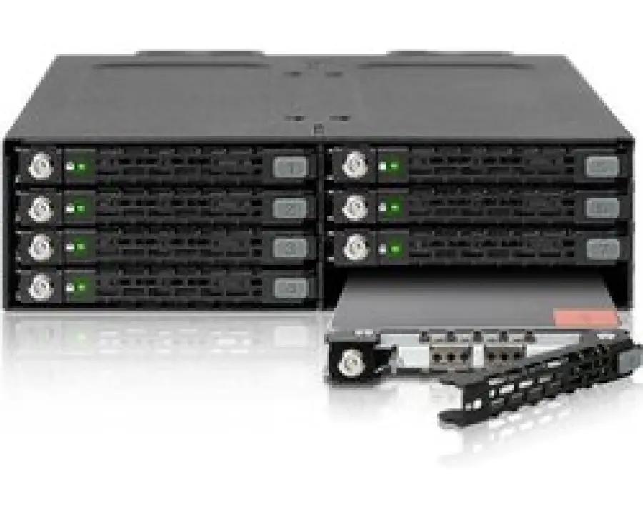 De ICY Dock MB998SK-B is een hoogwaardige backplane, speciaal ontworpen om tot acht 2,5-inch harde schijven of SSD's te installeren in een enkele 3,5-inch bay. Dit maakt het een perfecte oplossing als je extra opslagcapaciteit nodig hebt zonder extra ruimte in je computerkast te verliezen.
