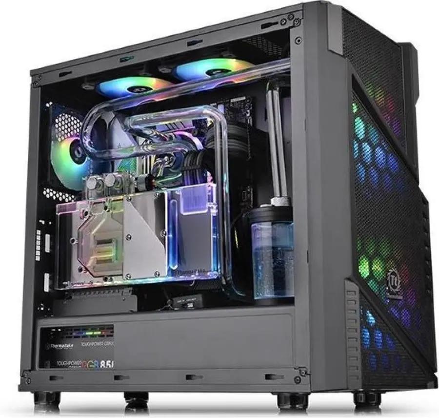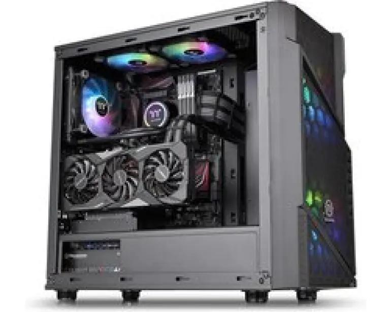 Deze behuizing is uitgerust met maar liefst drie voorgeïnstalleerde ventilatoren: twee grote 200 mm ventilatoren aan de voorkant en één 120 mm ventilator aan de achterkant. Dit zorgt voor een optimale luchtstroom om je componenten koel te houden, zeker tijdens intensief gamen of zwaar werk. De ventilatoren ondersteunen verschillende diameters (120, 140 en 200 mm) en zijn voorzien van kleurrijke ARGB-verlichting, wat jouw setup een opvallende uitstraling geeft.