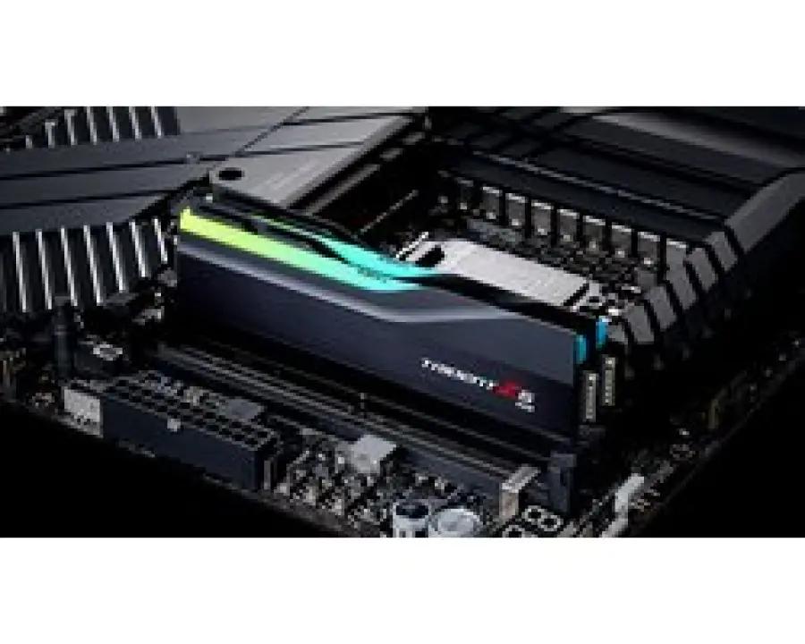 Met de G.Skill Trident Z RGB kit van 32GB (2x16GB) haal je intern geheugen in huis dat je pc flink sneller maakt. Dit DDR5 geheugen werkt met een hoge snelheid van 6000 MHz, wat zorgt voor vlotte prestaties bij gamen, videobewerking en andere zware taken. Door de CAS-latentie van 38 reageert het geheugen snel en efficiënt, wat je systeem een flinke boost geeft.