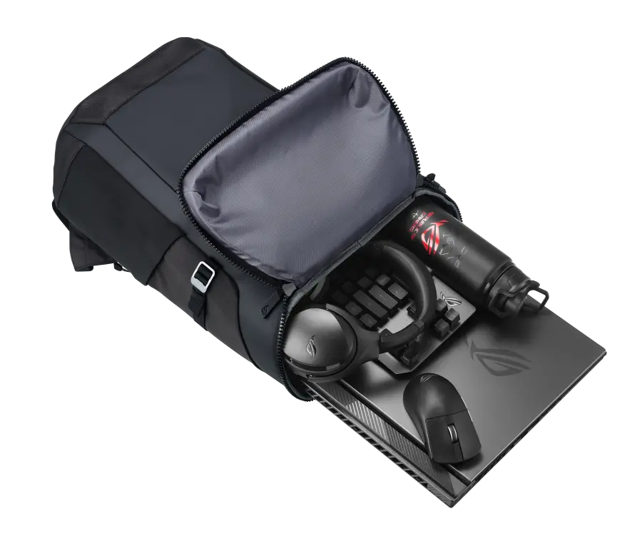 De ASUS ROG Ranger BP2701 is niet zomaar een rugzak, maar een echte blikvanger. Met zijn opvallende schuine strepen, een reflecterend oppervlak en een holografisch ROG-logo laat deze rugzak jouw stijl zien, waar je ook gaat. Gemaakt van zeer sterk polyester, is hij niet alleen krasbestendig maar ook waterafstotend, waardoor jouw spullen altijd goed beschermd zijn. Ondanks zijn robuuste eigenschappen weegt hij slechts 0,93 kg, wat hem lekker licht en comfortabel maakt om te dragen.