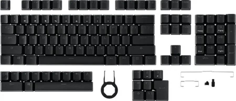 Ben je toe aan een frisse look voor je toetsenbord? Met de ASUS ROG PBT Keycap Set AC03 vervang je eenvoudig je oude toetsen door een stijlvolle, zwarte set die geschikt is voor de meeste toetsenbordindelingen. Deze set is speciaal ontworpen voor QWERTY-layouts en past perfect op vrijwel elk toetsenbord, waardoor je snel en makkelijk kunt wisselen zonder gedoe.