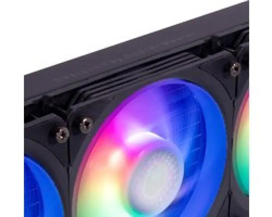 De 2e generatie adresseerbare RGB-LED's in de pomp en ventilatoren zorgen voor een kleurrijke en aanpasbare verlichting die je kunt bedienen via RGB-gecertificeerde moederborden of de meegeleverde controller met MasterPlus+-software. Zo geef je jouw systeem een persoonlijke en opvallende uitstraling.