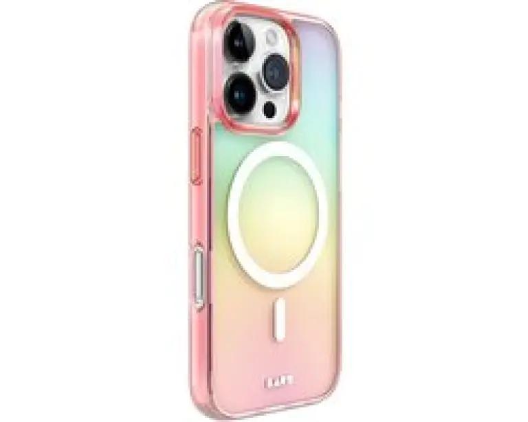 De Laut Holo hoes is speciaal ontworpen voor telefoons met een schermgrootte van 17 cm (6.7 inch). Deze hoes combineert een stijlvolle meerkleurige uitstraling met zachte roze en transparante details, waardoor jouw telefoon er net zo uniek uitziet als jijzelf.