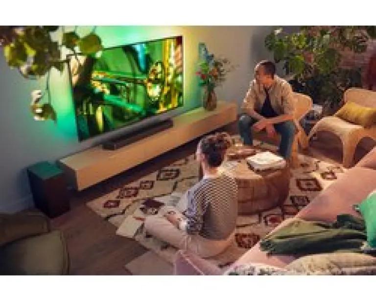 Met de Philips TAB7908/00 soundbar geniet je van een indrukwekkende 5.1.2-kanaals audio-ervaring die je woonkamer verandert in een thuisbioscoop. Dankzij Dolby Atmos wordt het geluid driedimensionaal, waardoor je midden in de actie zit. De aparte middenkanaal zorgt voor kristalheldere stemmen, zodat je geen woord mist tijdens je favoriete films of series.