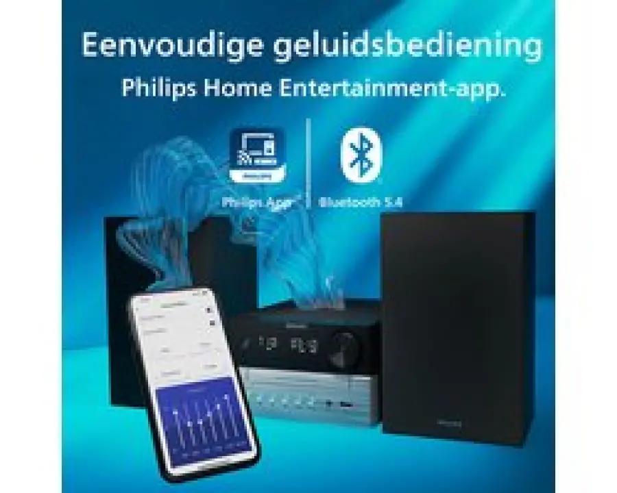De stereo ondersteunt Bluetooth Low Energy (LE Audio) en Auracast, wat zorgt voor betere streamingkwaliteit en luisterervaring. Je kunt meerdere luidsprekers verbinden voor een uitgebreid geluidssysteem. Bedien het systeem bovendien makkelijk via de Philips Entertainment-app op je smartphone. Pas geluidsstijlen aan, wissel snel van bron en geniet van ultiem gebruiksgemak zonder van je plek te hoeven komen.