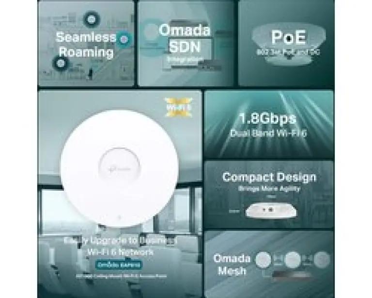 De TP-Link EAP610 is een geavanceerd draadloos toegangspunt dat gebruikmaakt van de nieuwste wifi 6 technologie. Met gecombineerde snelheden tot wel 1775 Mbps (574 Mbps op 2.4 GHz en 1201 Mbps op 5 GHz) biedt dit access point een snelle en stabiele verbinding, ideaal voor drukke omgevingen zoals kantoren, hotels, winkels en campussen.