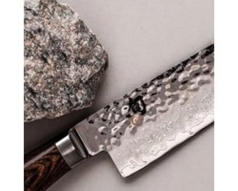 Het lemmet van dit Santokumes is gemaakt van duurzaam damaststaal. Door verschillende lagen hard en zacht staal te combineren, is het lemmet niet alleen harder en dunner te slijpen, maar ook beter bestand tegen breken. Dit zorgt voor een scherpe en langdurige snijkant die je moeiteloos door allerlei ingrediënten laat glijden.