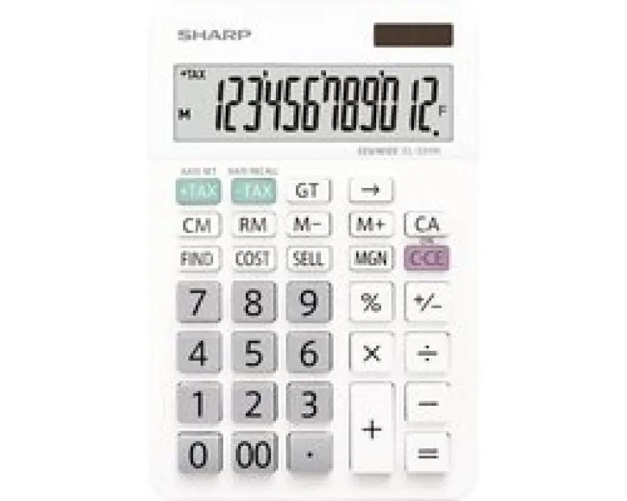 De Sharp EL-334W is een bureaurekenmachine die opvalt door zijn strakke, witte design en het extra grote 12-cijferige LCD-display. Dit display wordt omlijst met een glasachtige rand, waardoor de cijfers duidelijk en scherp zichtbaar zijn, wat het werken nog makkelijker maakt. Dankzij het compacte formaat neem je deze rekenmachine eenvoudig mee of gebruik je hem zonder dat hij veel ruimte inneemt op je bureau.